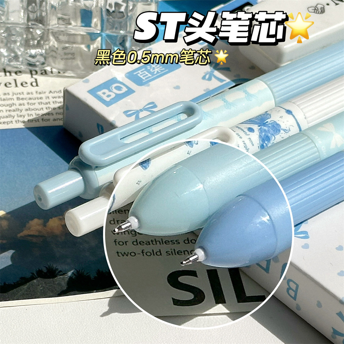ST刷题笔高颜值按动中性笔圆珠笔黑色水笔小学生专用考试0.5速干碳素笔水性黑笔按压式做笔记签字笔非按斤卖