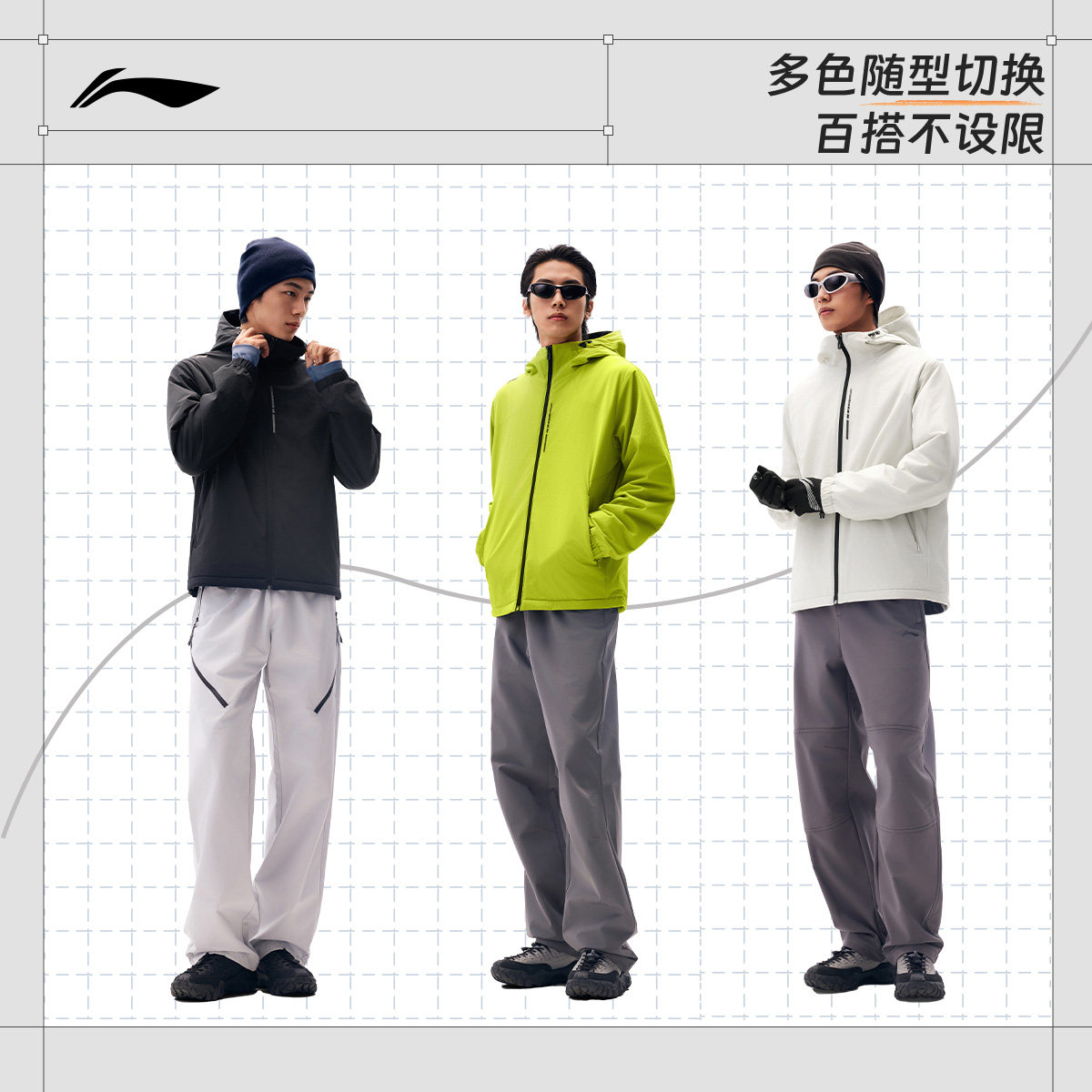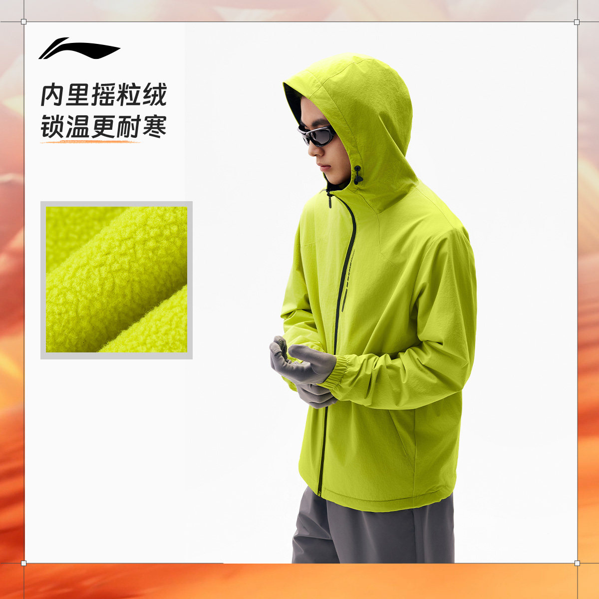 李宁外套男秋冬季新款跑步连帽夹克上衣加绒保暖户外机能运动风衣