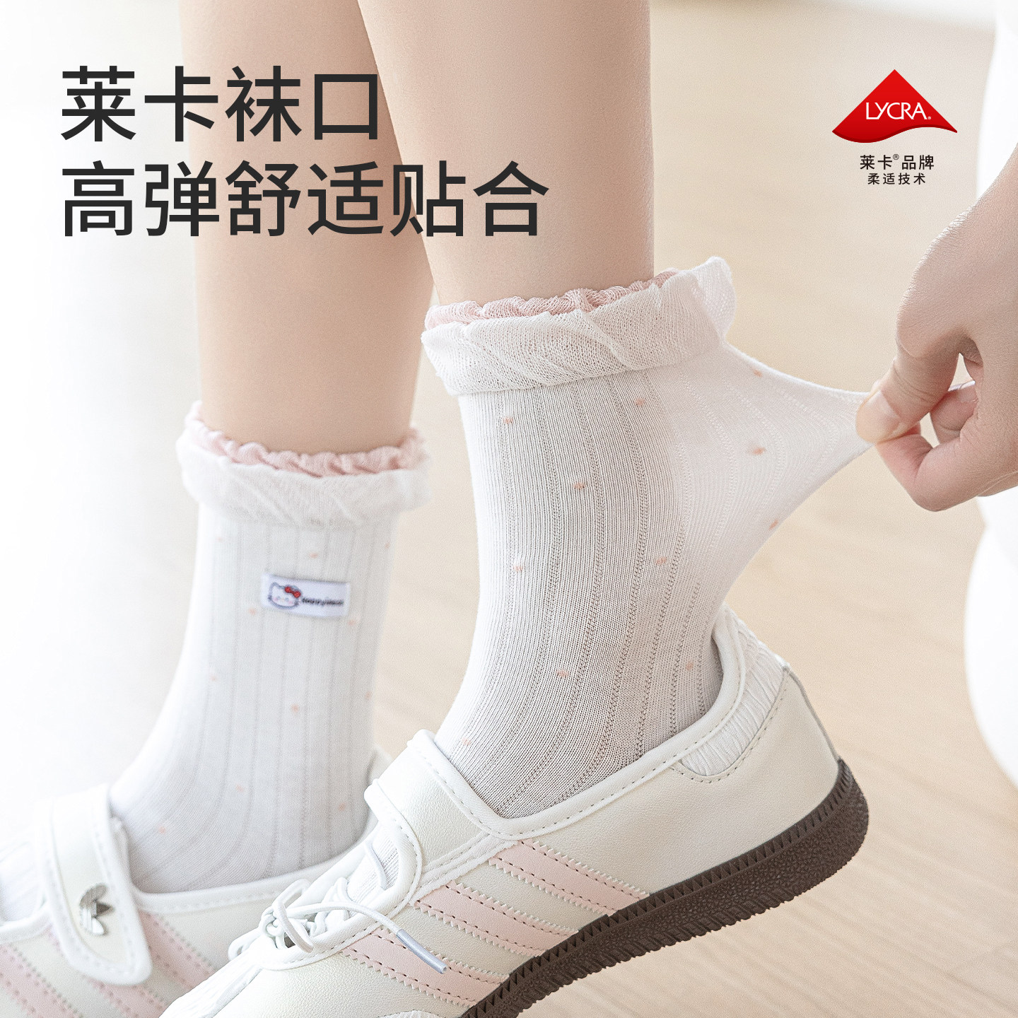 卡拉美拉2026春夏新款中筒袜女木耳边少女薄款卡通小猫堆堆袜袜子
