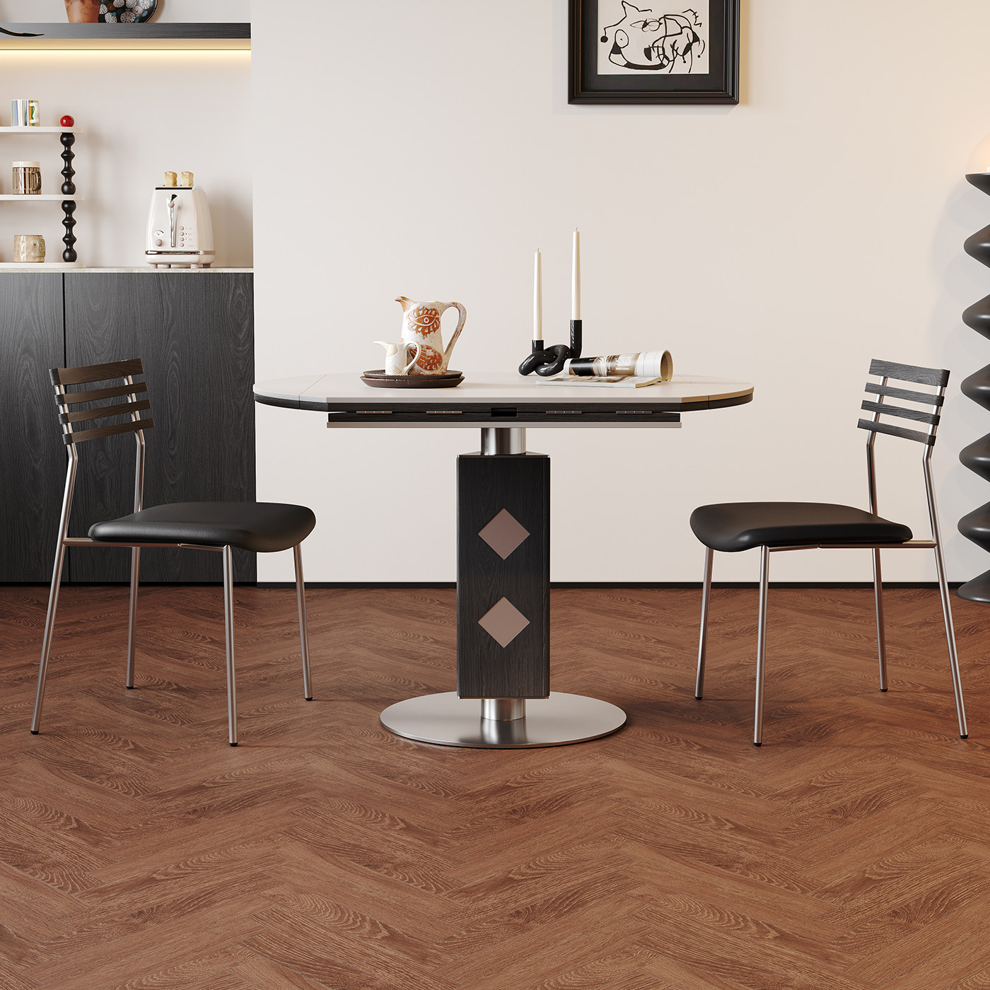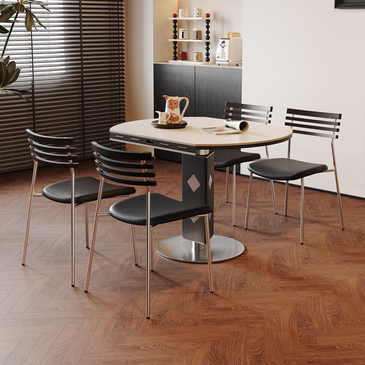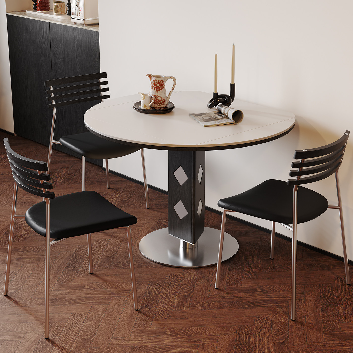 岩板餐桌小户型圆形2025新款家用靠墙法式复古1米长方形伸缩餐桌