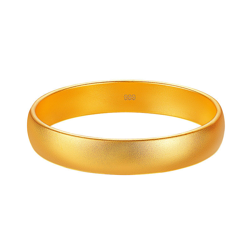 周六福古法银手镯女磨砂S999足银素圈镯情侣节日礼物送男友送女友