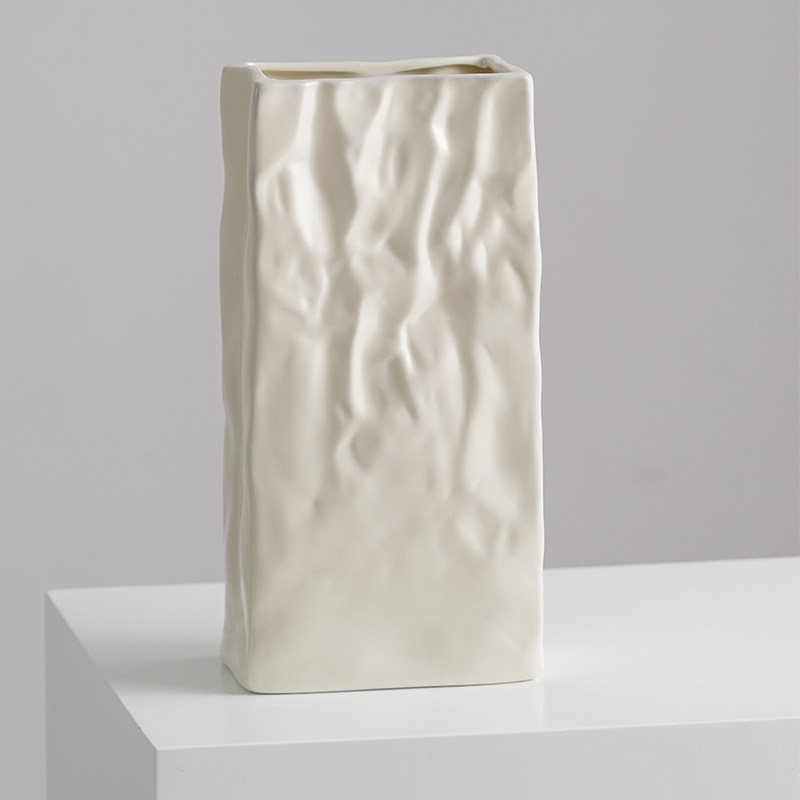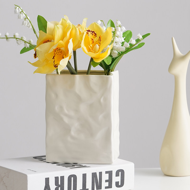 简约奶油纸袋花瓶轻奢高级感摆件插花水培鲜花客厅装饰品玄关红色