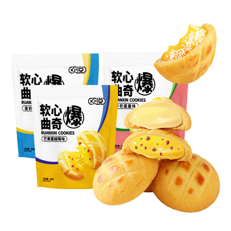 软心爆浆曲奇蛋奶椰蓉味芒果蔓越莓味零食饼干甜品甜点面包糕点