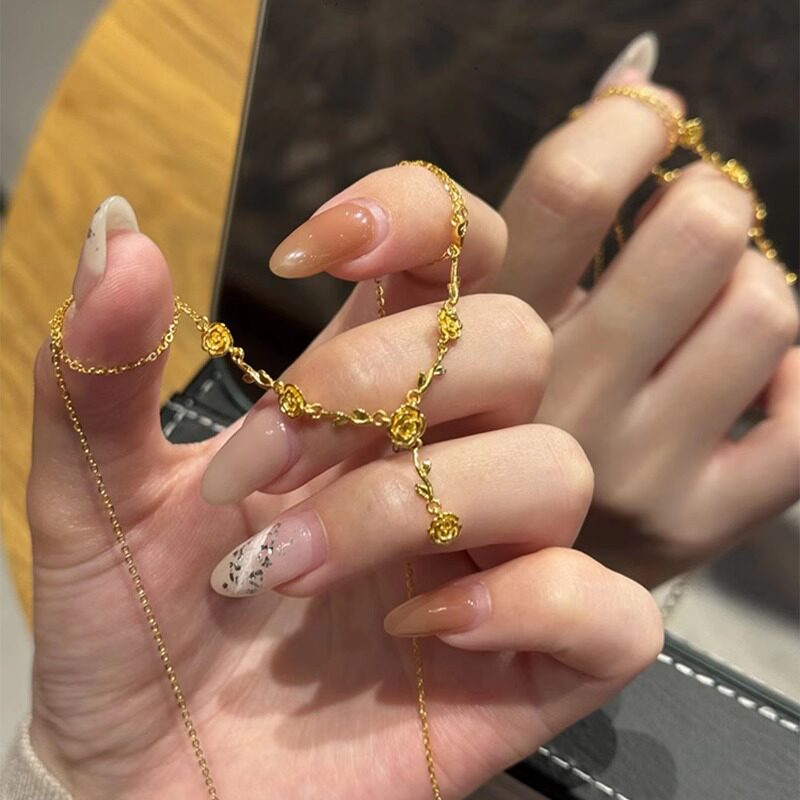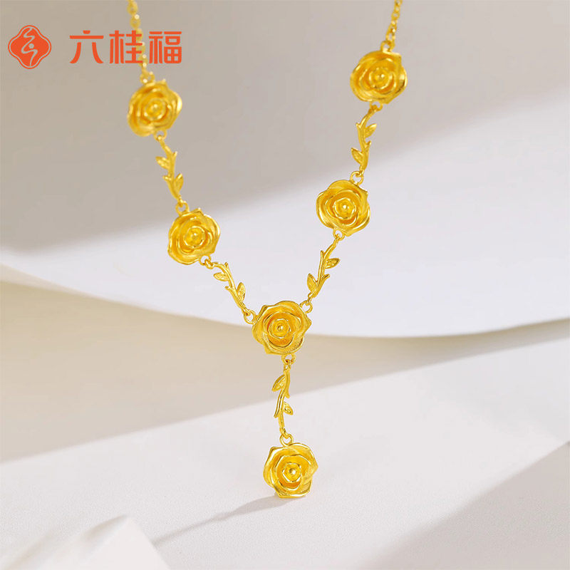 六桂福S925银黄金色玫瑰花流苏项链花朵锁骨链女友情人节新年礼物