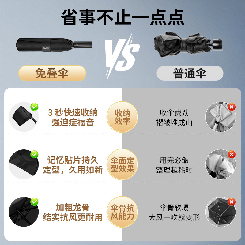 记忆贴片免折叠全自动晴雨伞加大加固抗风暴一键便携收伞免折定型