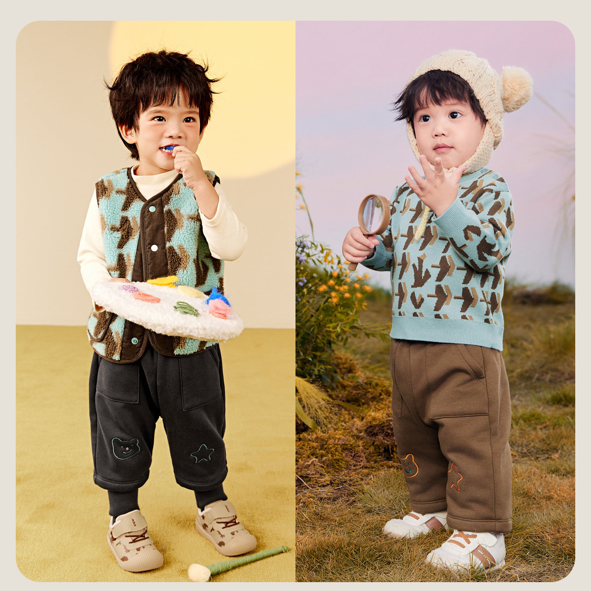 【李佳琦直播间】齐齐熊男童新年打底毛衣裤子冬款宝宝格子裤儿童
