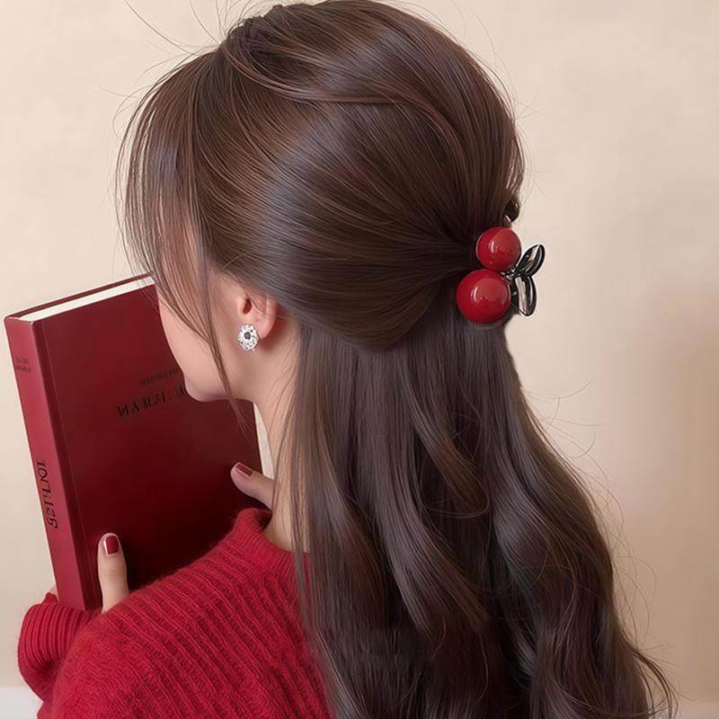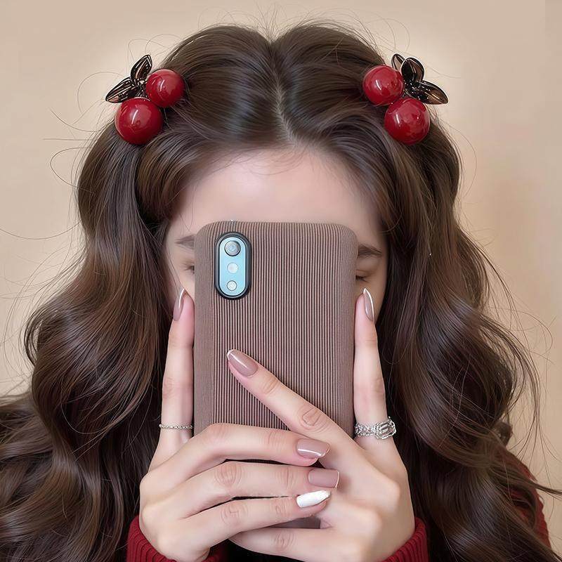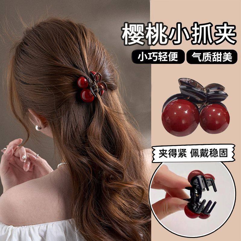 樱桃小抓夹羊毛卷发饰碎发夹女2025新款高端半扎后脑勺刘海夹侧边
