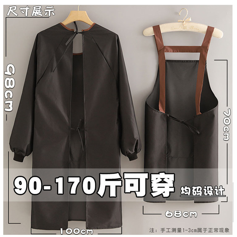 新款棉布耐磨围裙长袖厨房家用防污罩衣透气围腰做饭上班工作服女