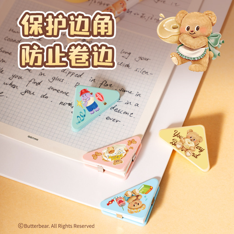 得力黄油小熊三角夹文件夹边角夹学生透明试卷收纳整理资料夹子文具卷子夹书夹卷子夹学生书夹病例体检票据