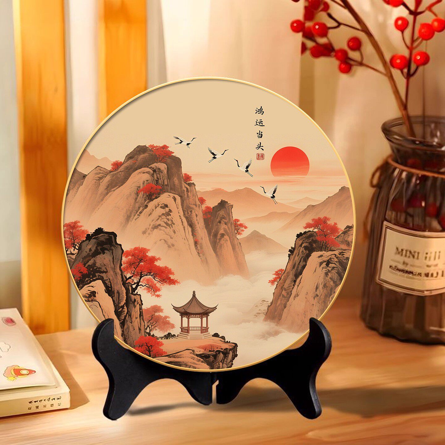 新中式餐厅装饰画饭厅墙面壁画客厅沙发背景墙挂画圆形柿柿如意画