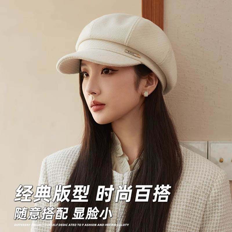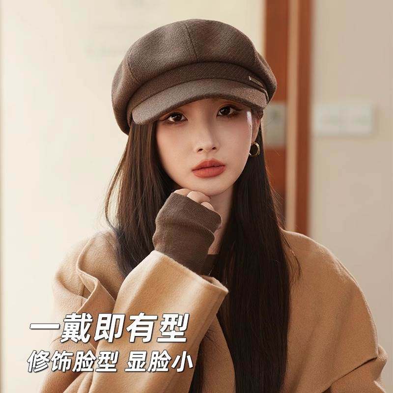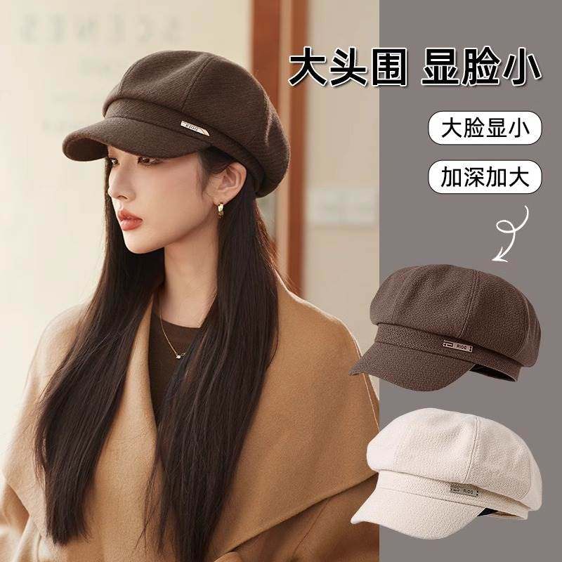 秋冬季美拉德八角帽子女2025新款大头围休闲复古显脸小鸭舌贝雷帽