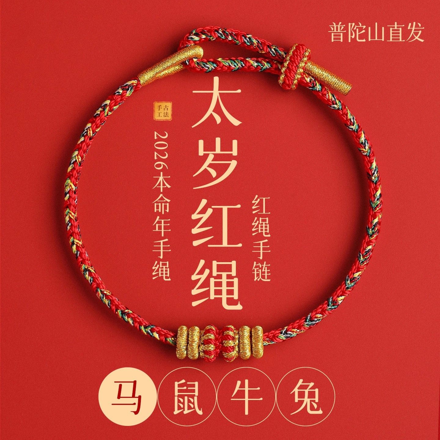 普陀山2026年犯太符手链红绳编织绳男女本命年化解手绳马年吉祥物
