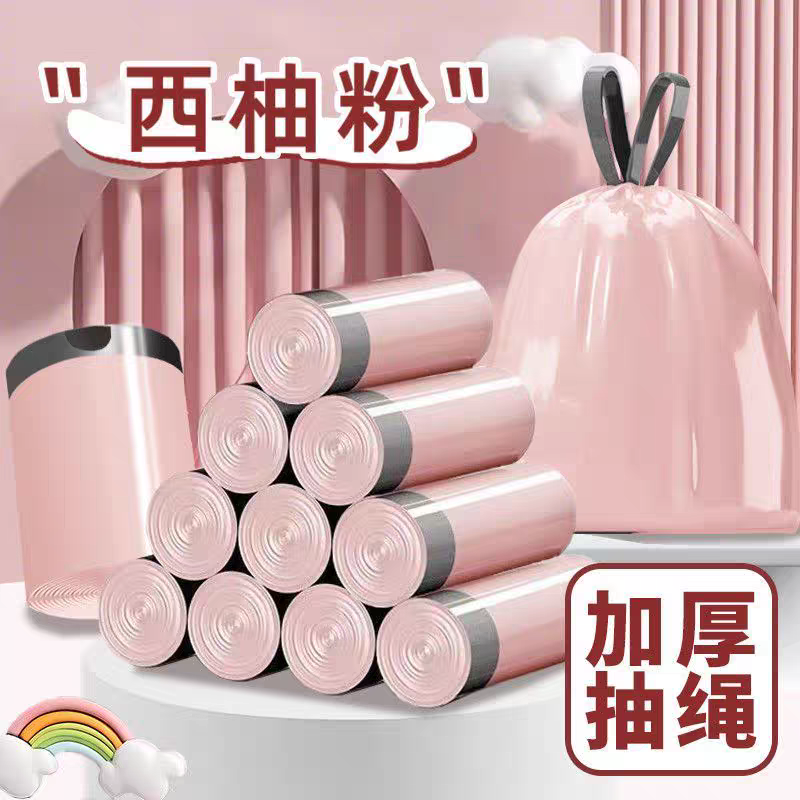 冰莓垃圾袋粉加厚手提式抽绳家用塑料袋厨房大号粉色收纳袋特厚