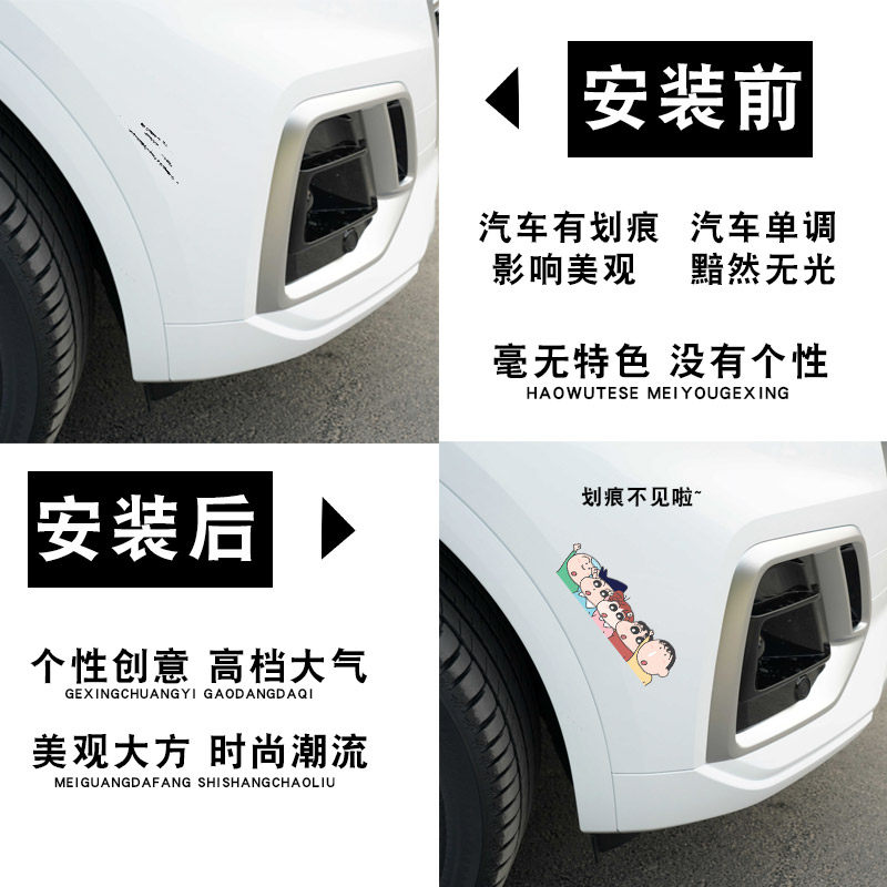 车门侧边贴汽车长条划痕遮挡可爱创意蜡笔小新车身保险杠防水贴画