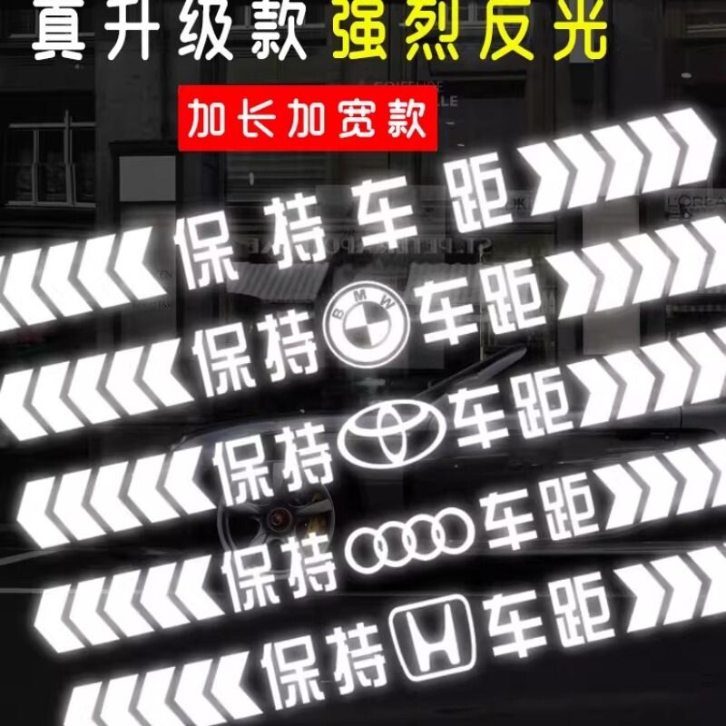 反光贴汽车贴纸保持车距警示创意个性车尾保险杠划痕遮挡装饰车贴
