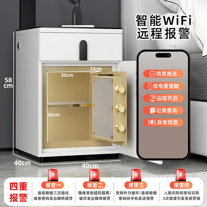 【极简设计】58cm虎牌保险柜家用2025新款智能多功能床头柜式保险箱指纹Wifi远程报警办公室文件防盗柜家庭用