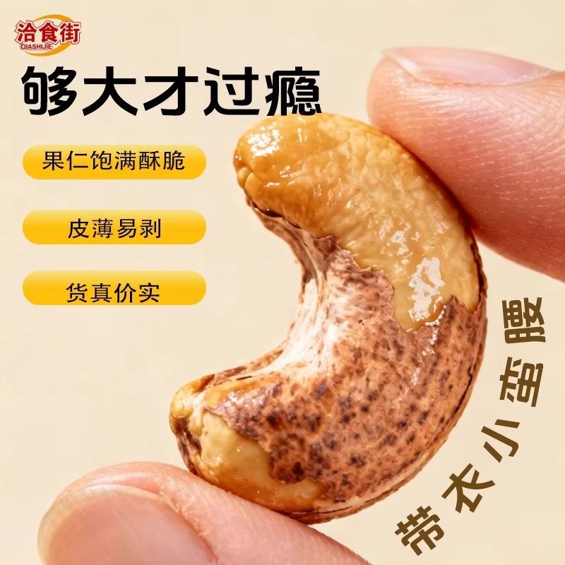 带皮腰果2025新货原味盐焗紫衣干果仁越南紫皮坚果批发官方旗舰店