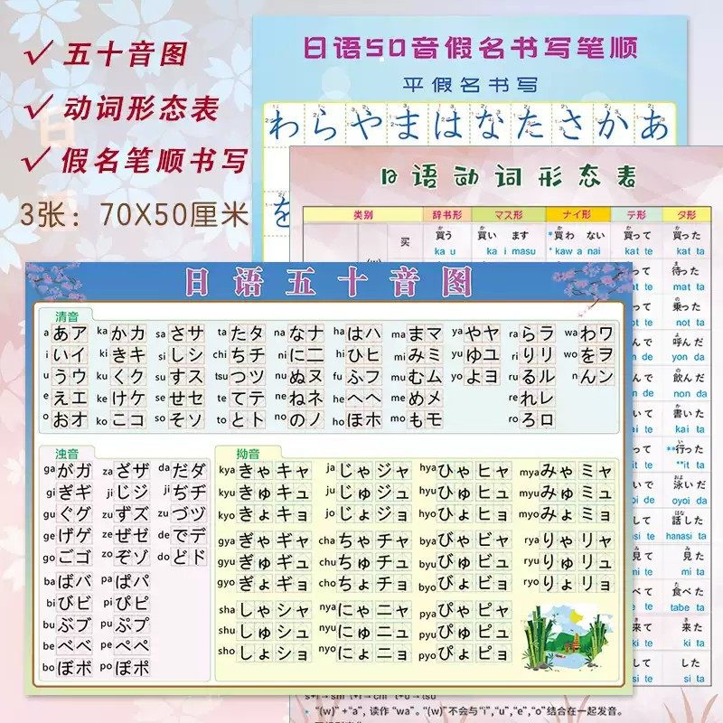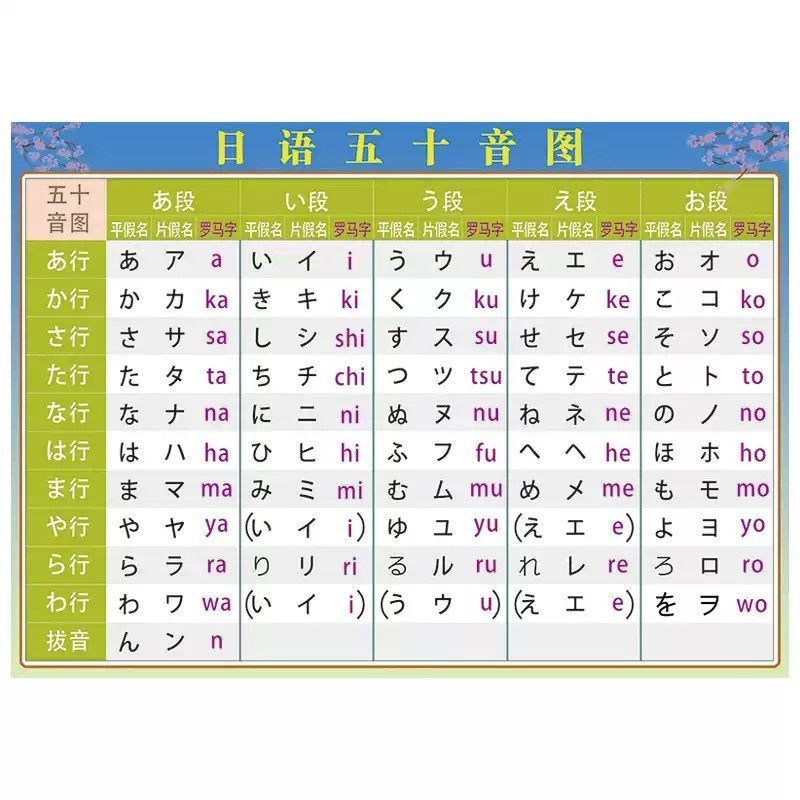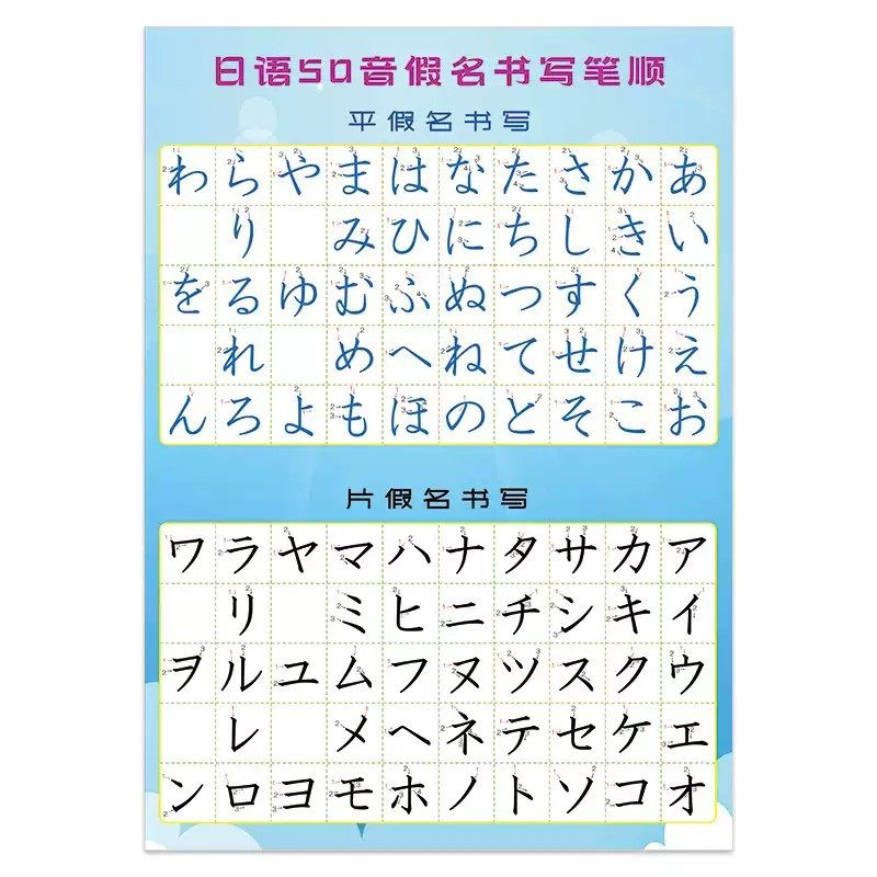日语五十音图表罗马音平假片健盘对照日文贴图墙贴挂图笔顺笔画
