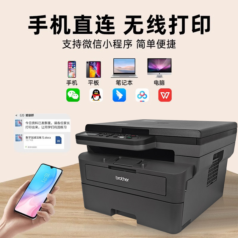 国家补贴兄弟DCP-L2508DW/2548黑白激光打印复印扫描多功能一体机无线WiFi自动双面打印办公家用可连接手机