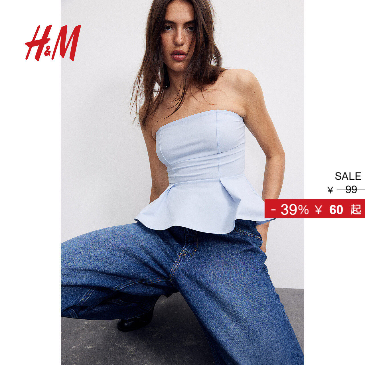 HM女装抹胸冬季时尚舒适修身裙式下摆抹胸式上衣1254805