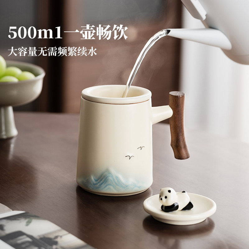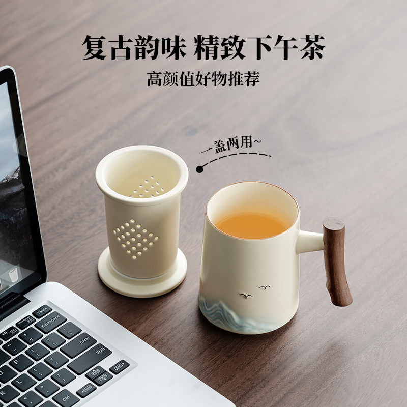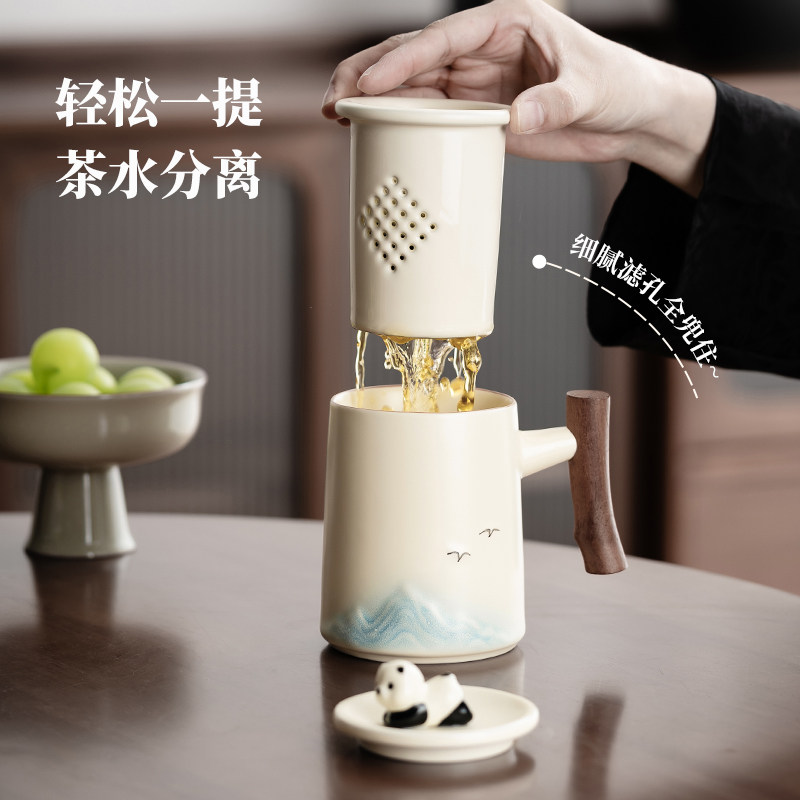 茶水分离泡茶杯家用带盖喝水办公室高颜值大容量马克杯男女陶瓷杯