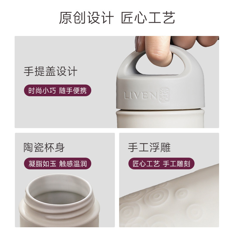 【家装节】乾唐轩活瓷同心缘手提式陶瓷杯便携式户外水杯咖啡杯