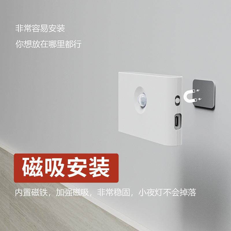 磁吸联动智能人体感应壁灯卧室楼梯走廊自动光控磁吸灯床头小夜灯