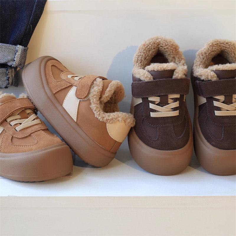 巴布豆男童棉鞋女童毛毛鞋2024新款冬季加绒儿童板鞋冬运动鞋二棉