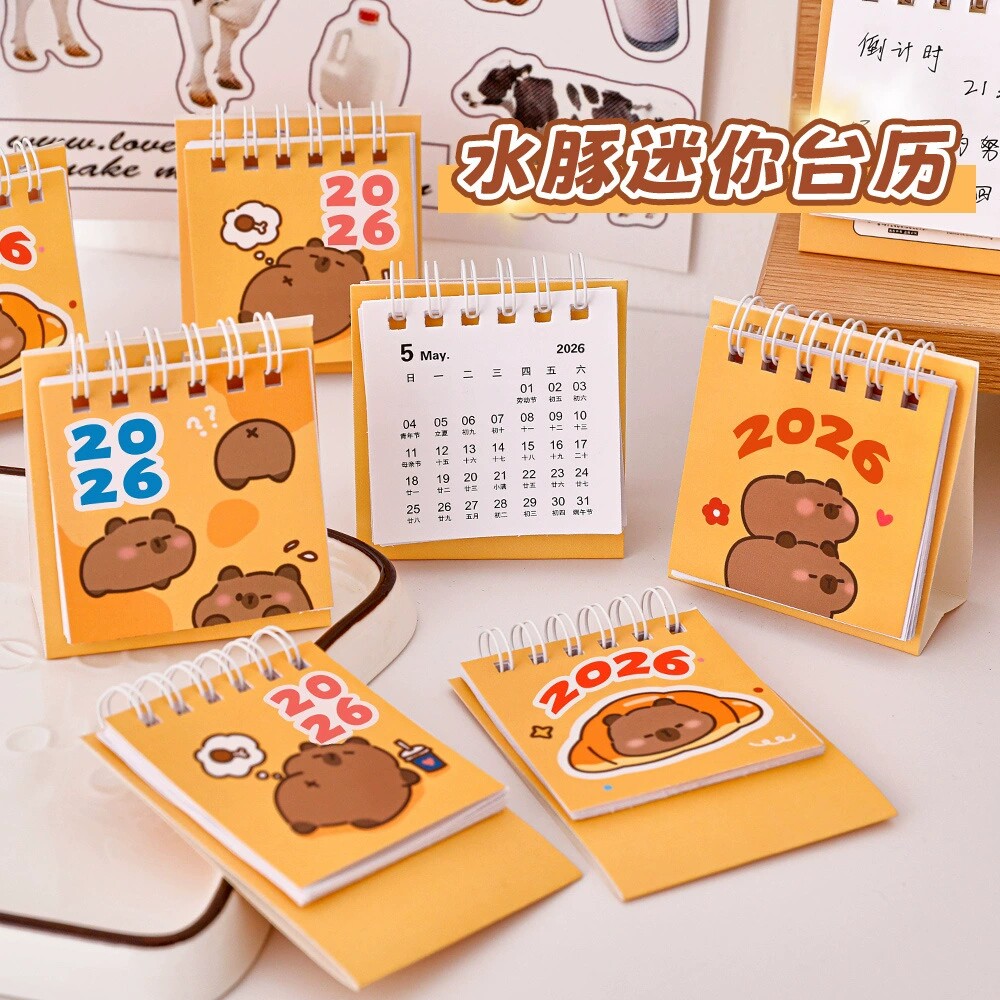 卡皮巴拉2026年台历 学生ins桌面计划打卡摆件可爱水豚迷你小台历