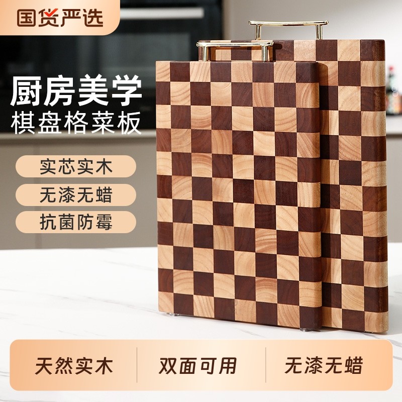 原森太棋盘格实木菜板防霉抗菌家用食品级案板厨房专用切菜板砧板
