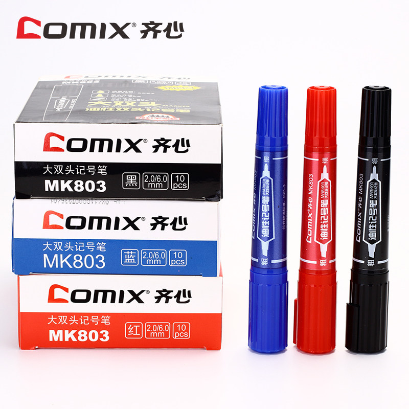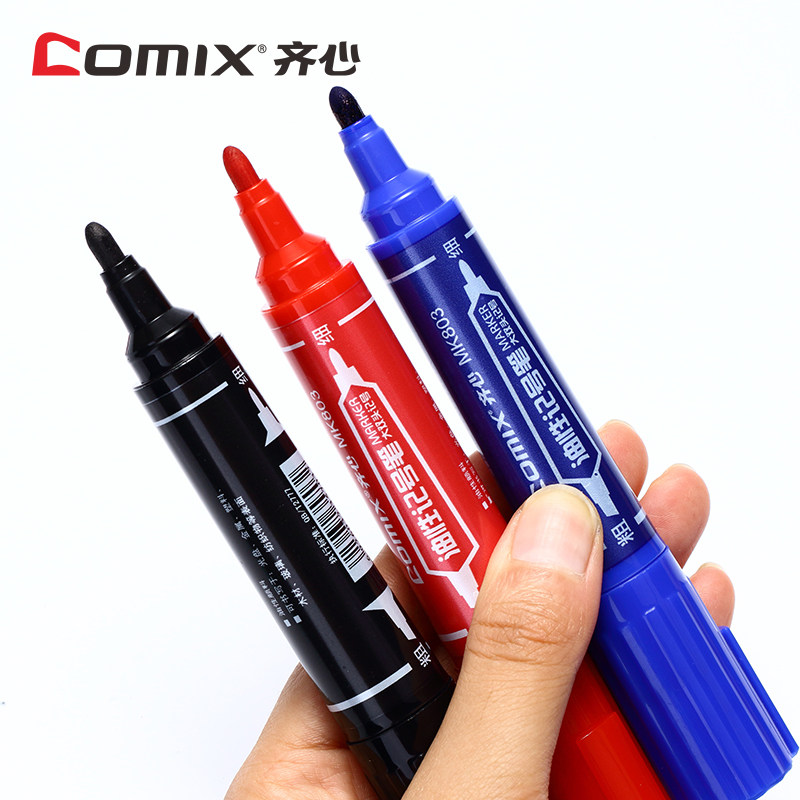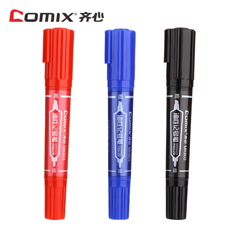 齐心黑色大小双头记号笔mk803/MK804/MK818/824蓝油性笔书写流畅