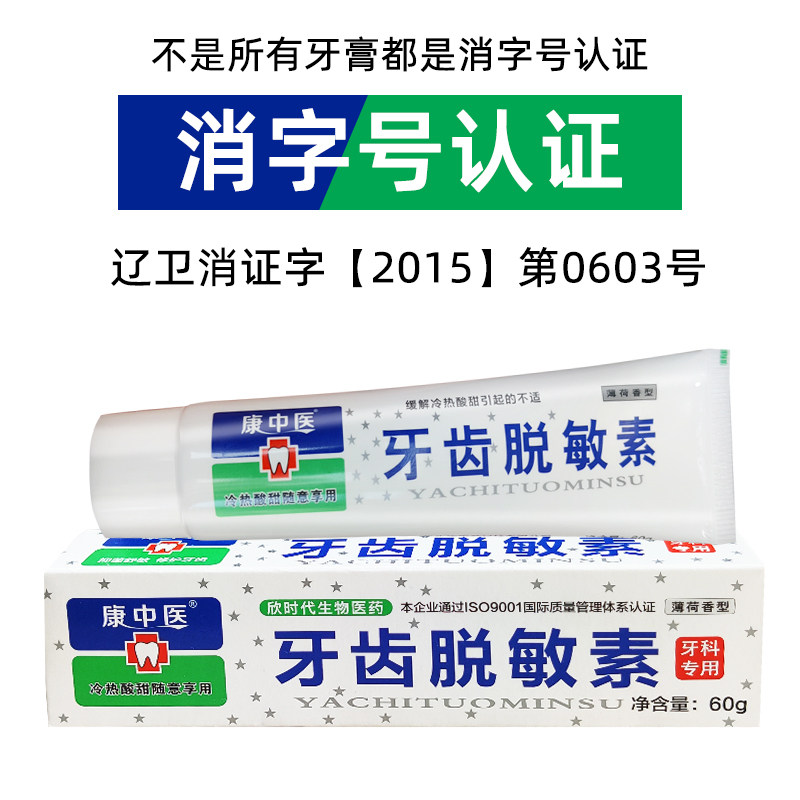 康中医牙齿抗敏素牙膏6支酸甜痛口腔清新口气薄荷敏感火牙龈脱敏