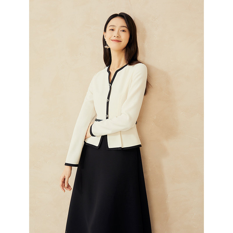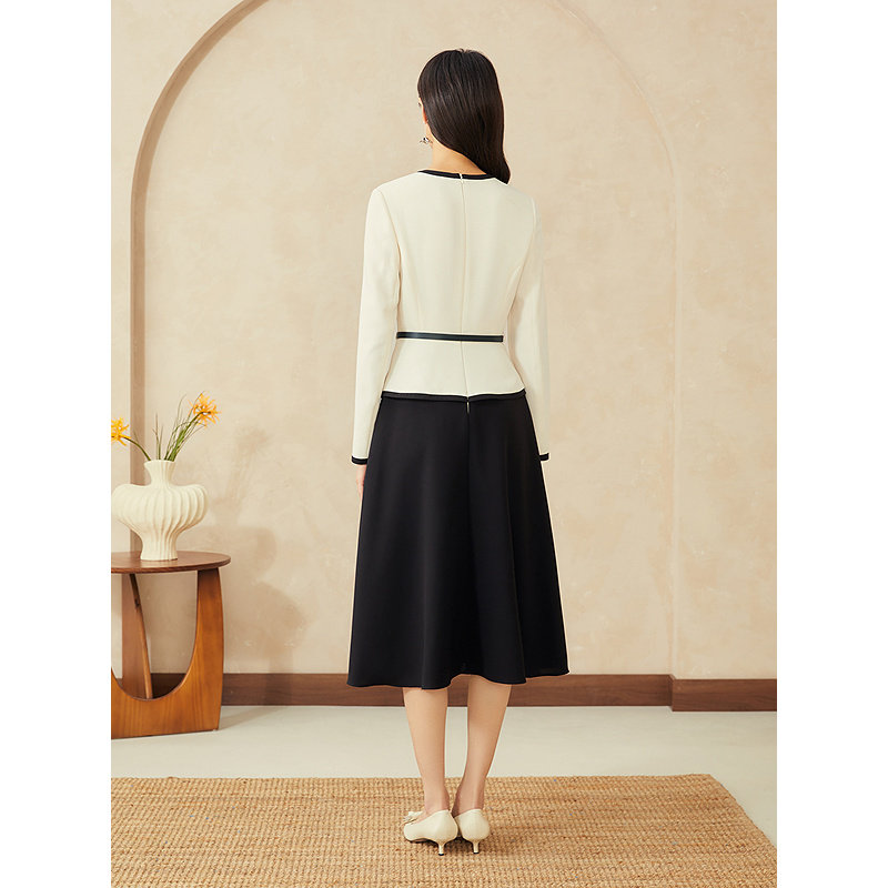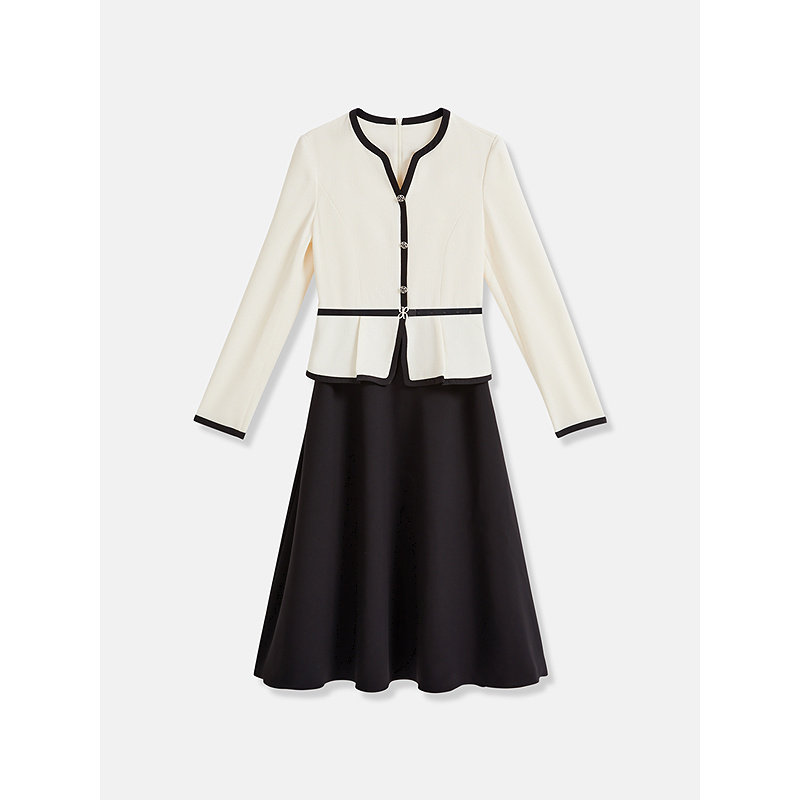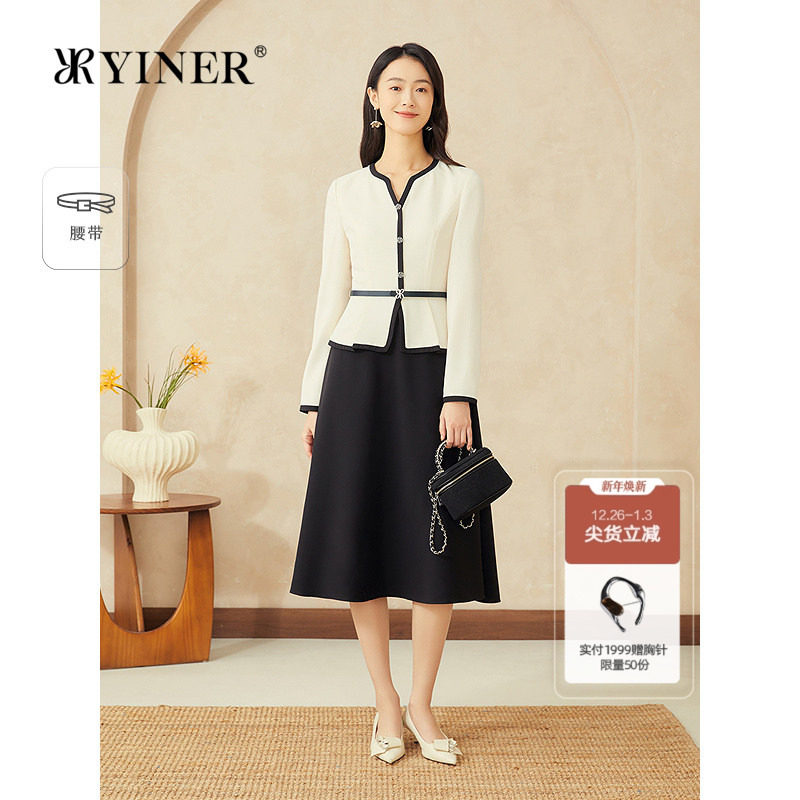 YINER音儿专选2025春新款法式小香风撞色假两件收腰醋酸连衣裙