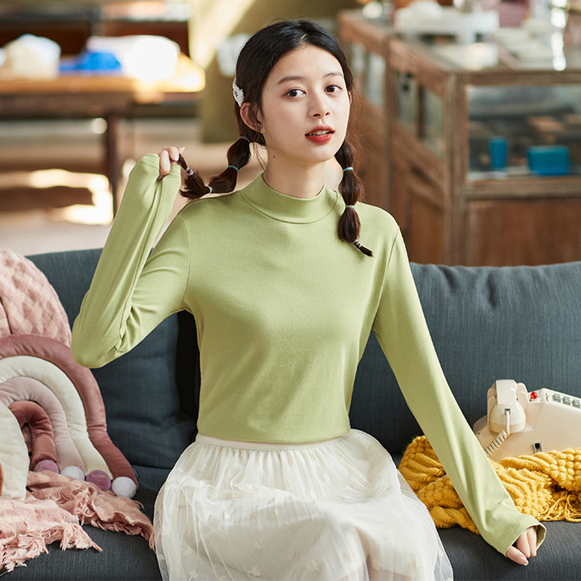 widelia十三行老板娘冬正肩小立领半高领打底衫弹力长袖T恤女9585