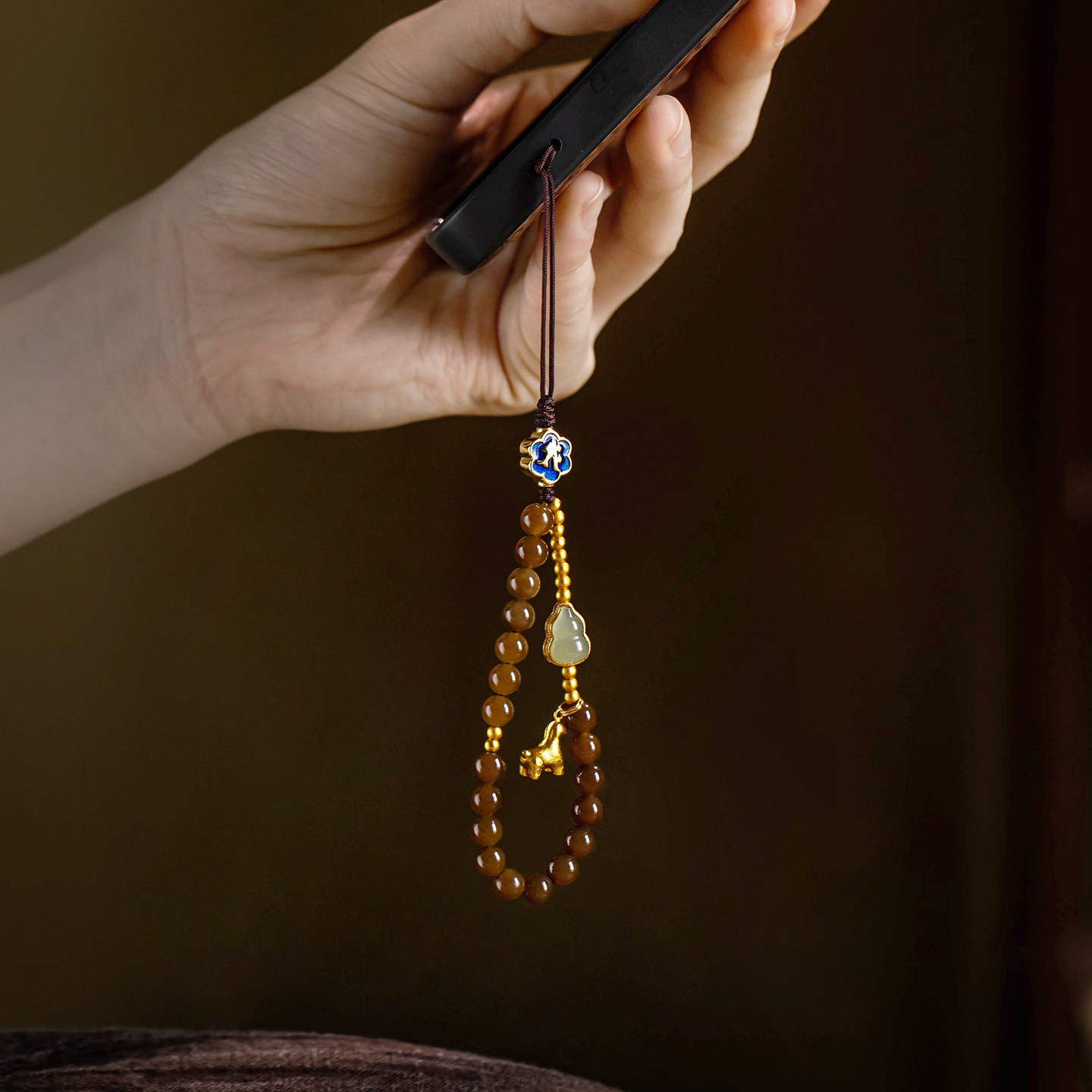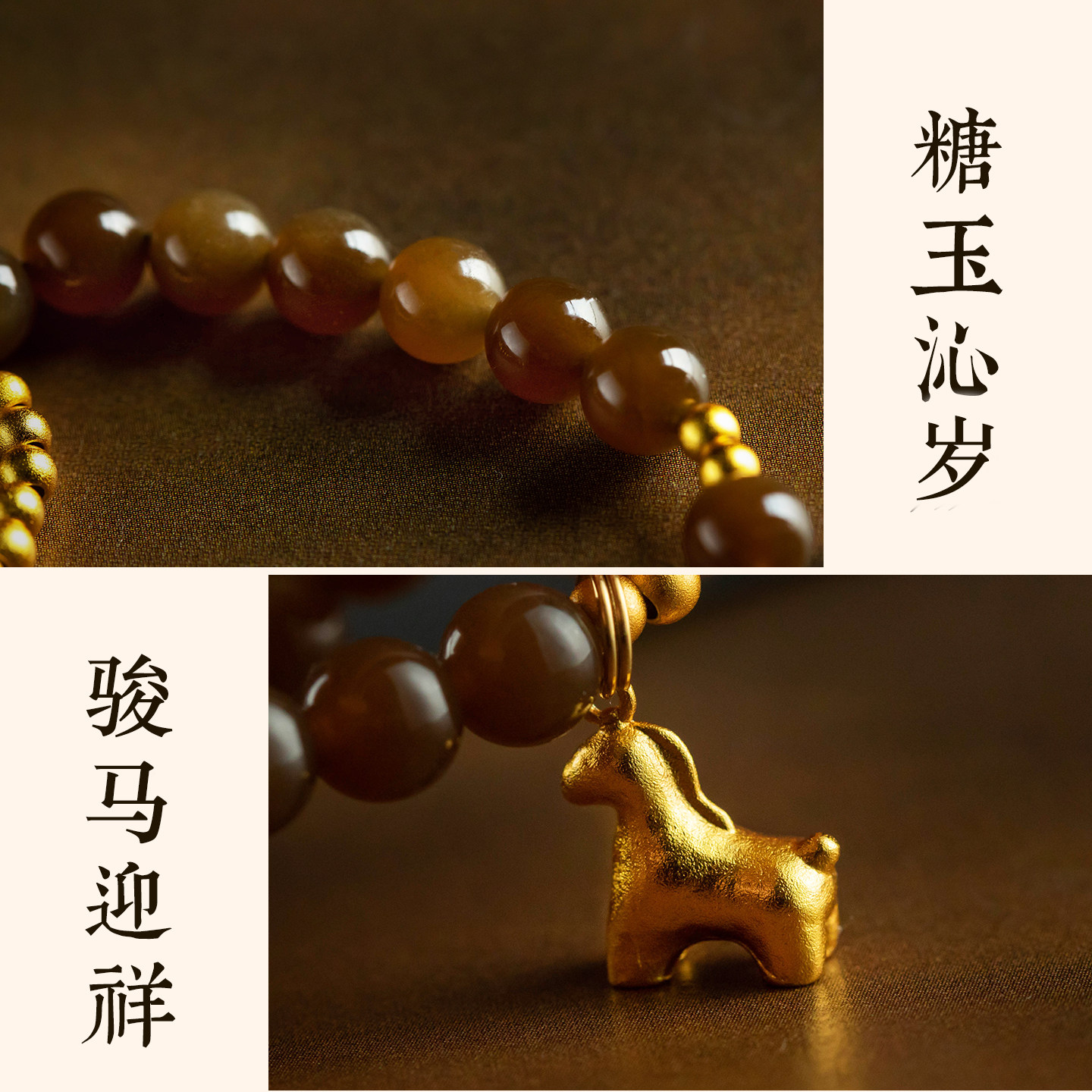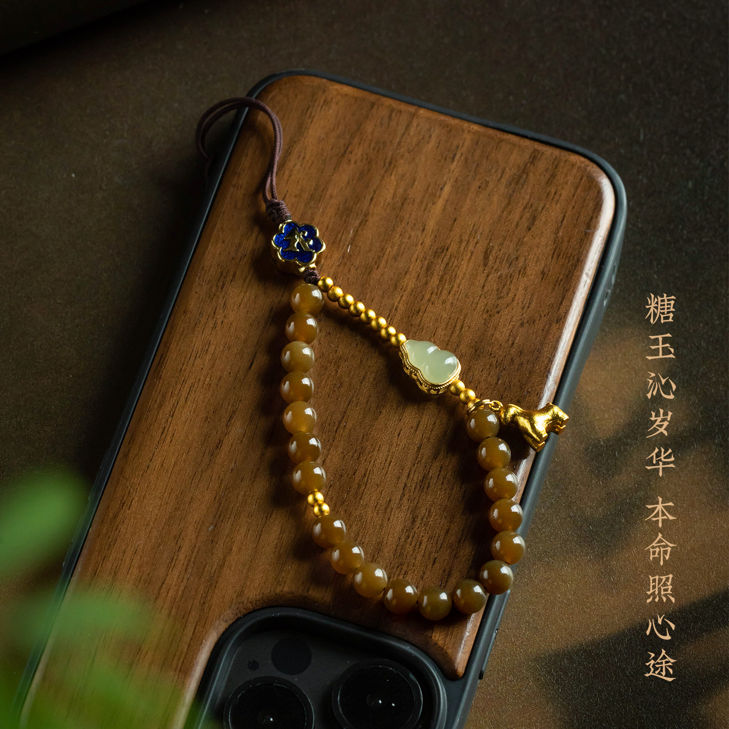 大善堂天然和田糖玉手机链生肖本命佛指环挂件马年本命年高档礼物