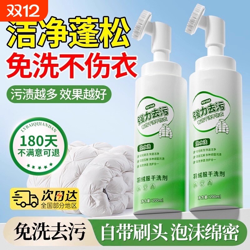 羽绒服清洗剂免水洗干洗剂专用白色神器清洁官方旗舰店免洗蓬松