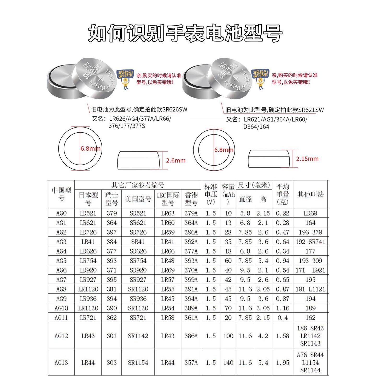 进口品质手表电池SR626SW/377A/SR621SW/364石英表小颗粒电子通用