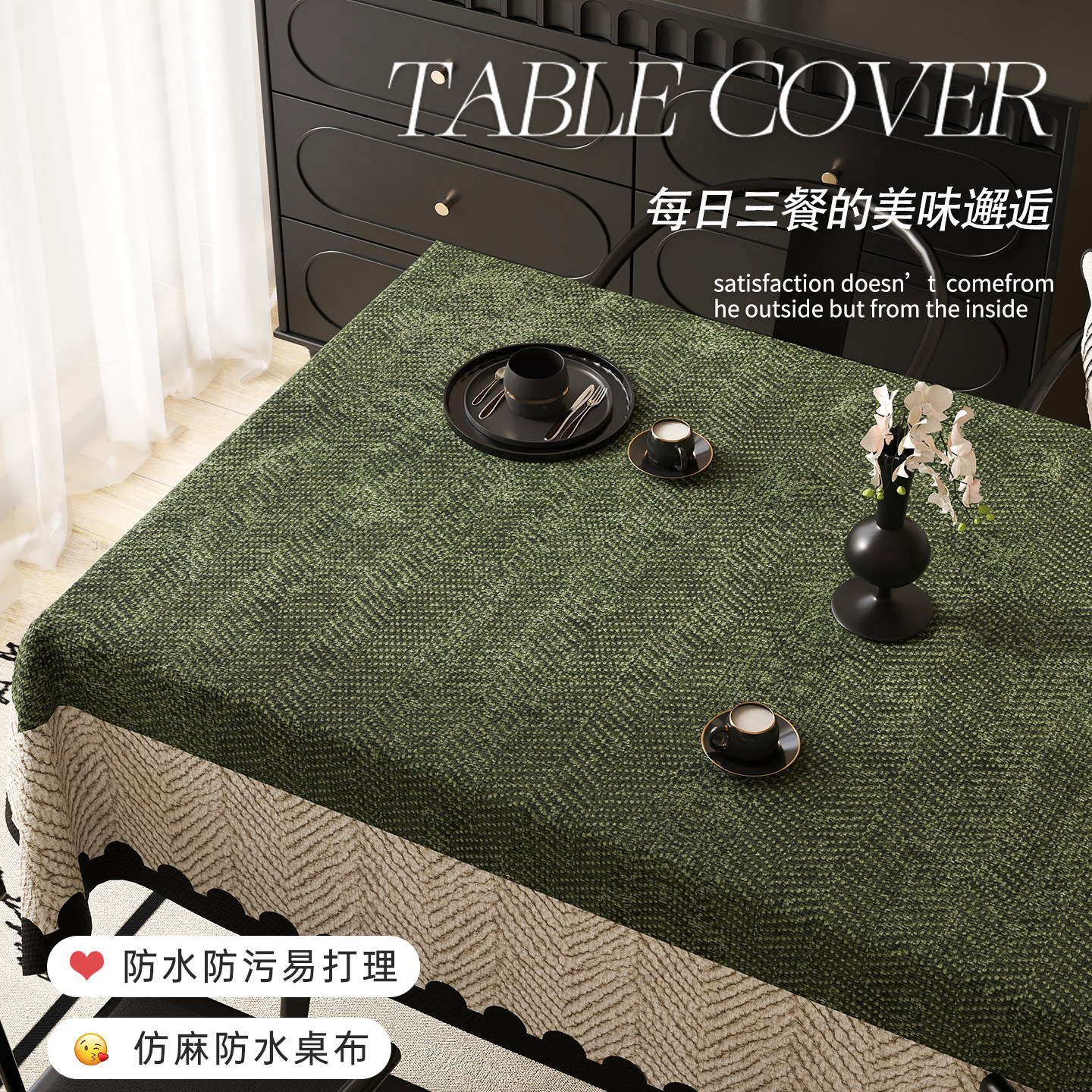 中古风桌布防水防油免洗桌垫2025新款轻奢高级感复古绿色茶几盖布