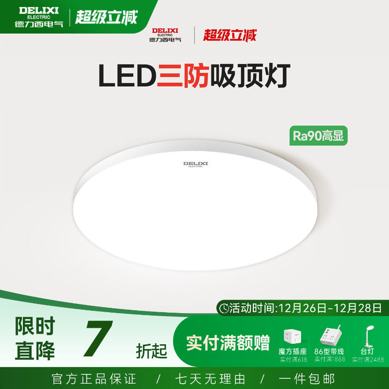 德力西LED三防吸顶灯简约灯饰过道灯走廊灯阳台灯玄关卧室防虫灯