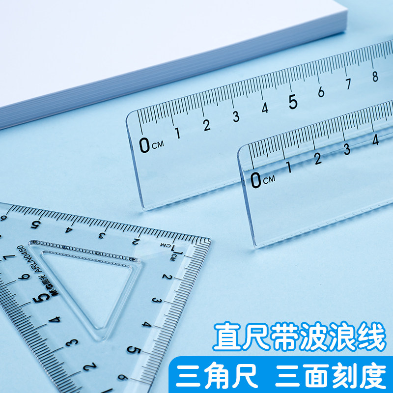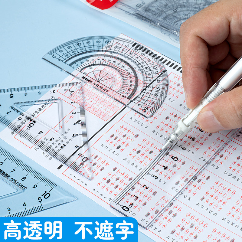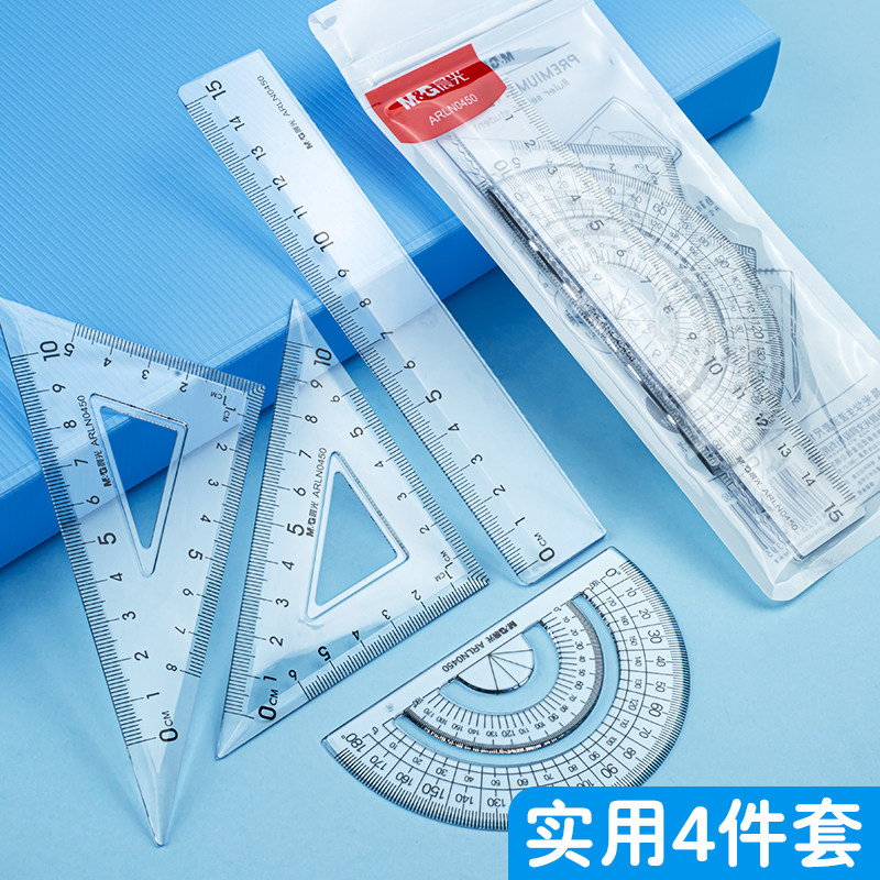 晨光套尺四件套透明尺子ins高颜值加厚简约学生套尺直尺三角尺量角器四件套考试可用套装