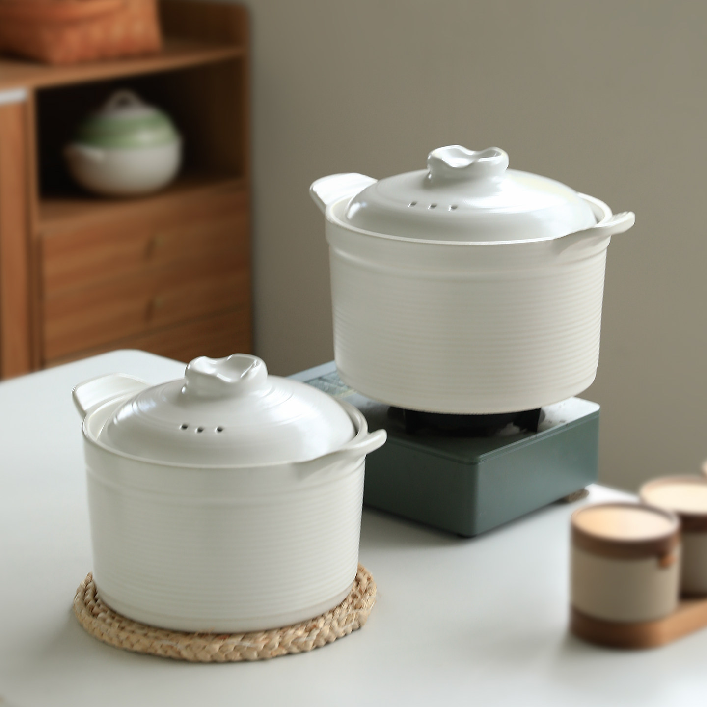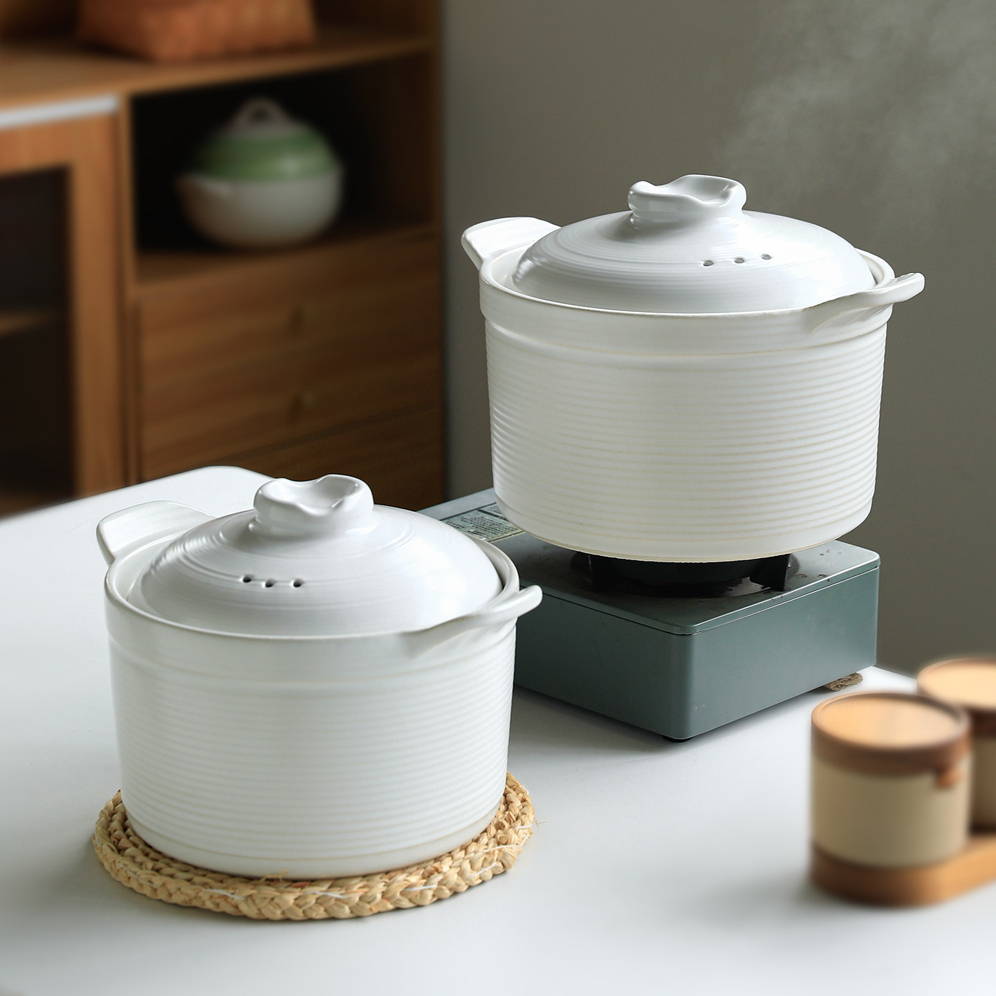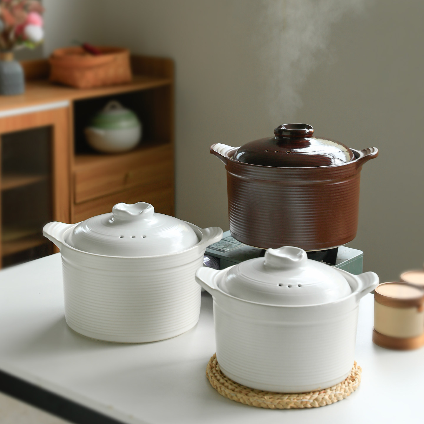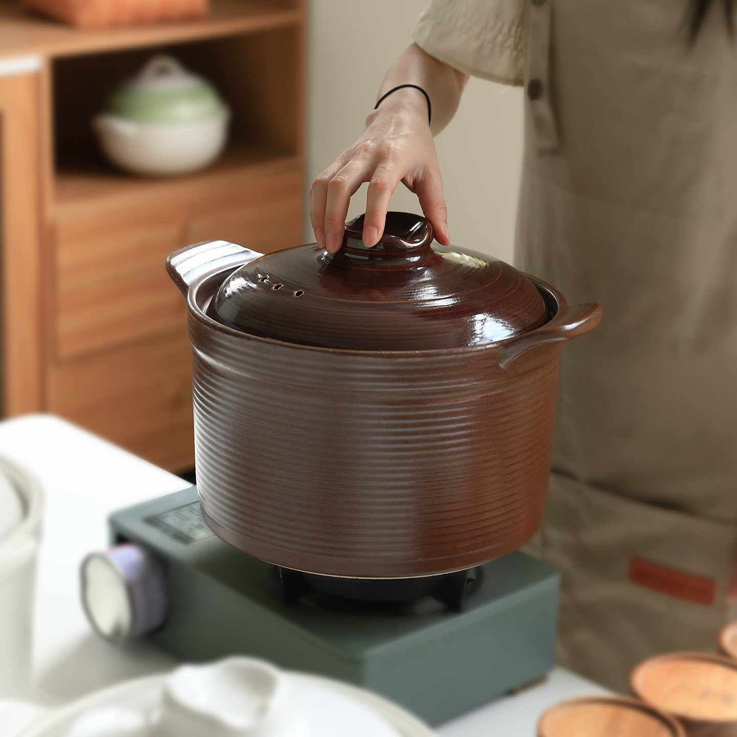 新中式汤锅砂锅家用煲汤锅耐高温干烧不裂燃气专用煲汤锅条纹炖锅