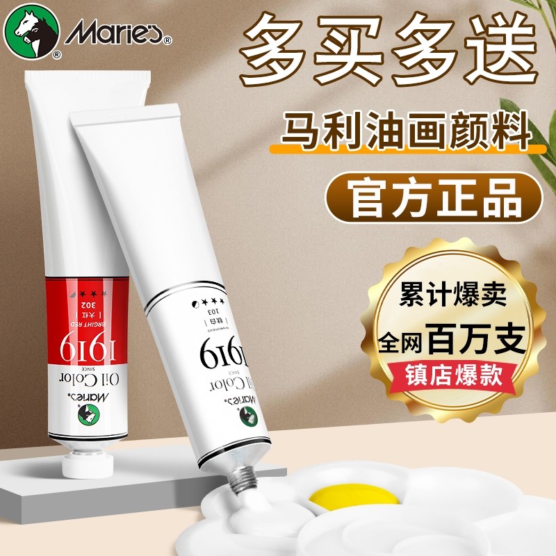 马利白色油画颜料50ML艺术家专业单支小支手绘油画布油画框美术生白染料工具套装玛丽牌丙烯金色钛白初学者