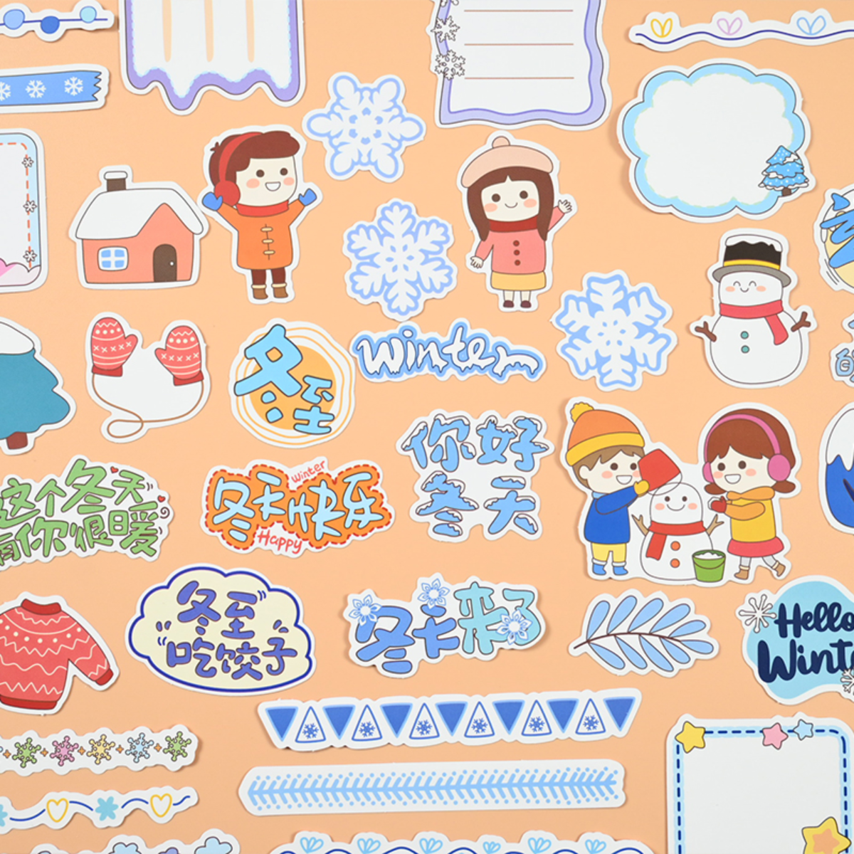 手工diy装饰材料包手账贴画冬天冬季幼儿园儿童创意贴纸卡通