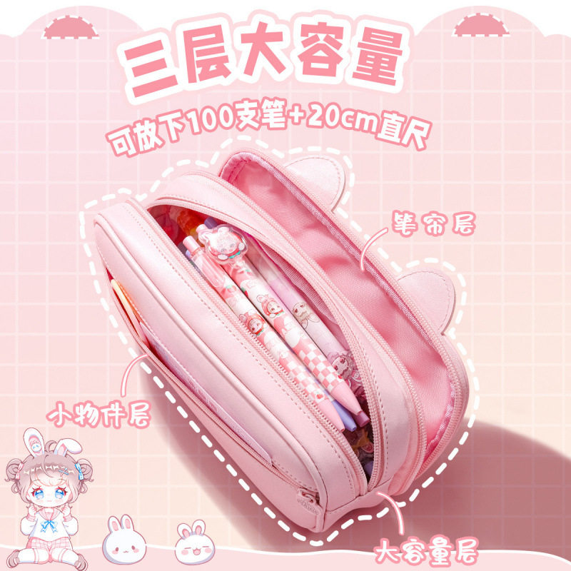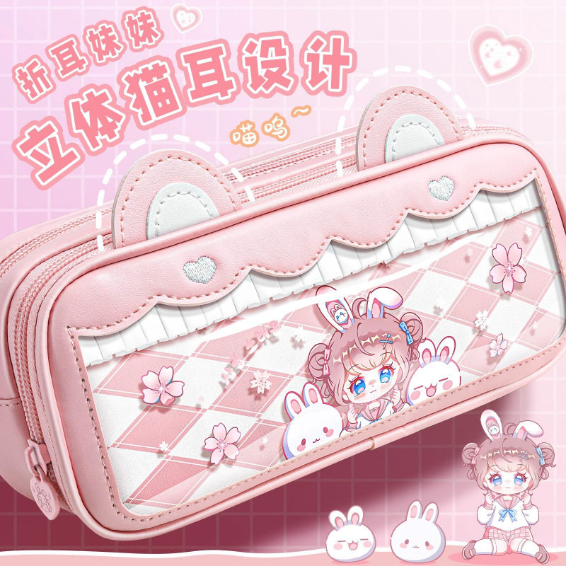 折耳妹妹猫耳笔袋可爱大容量笔袋透明多功能文具盒高颜值铅笔盒