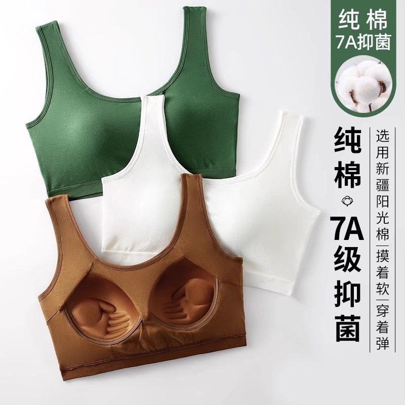 纯棉固定杯胸罩一体式美背运动文胸内衣小胸聚拢学生背心女防震