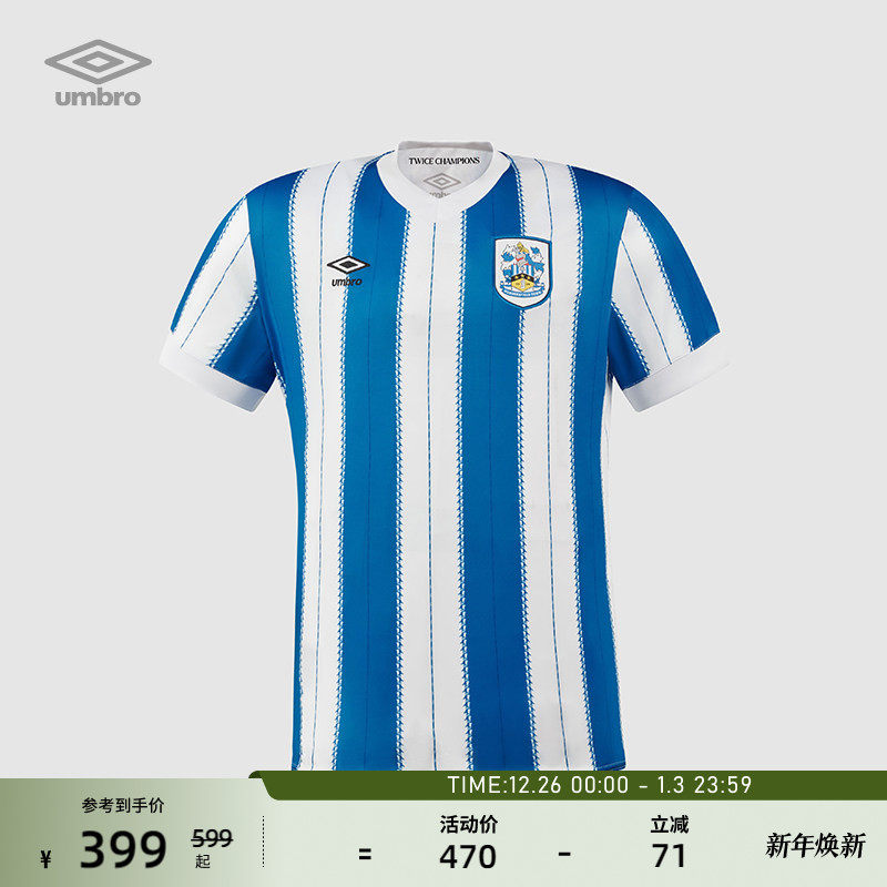 umbro茵宝官方哈德斯菲尔德24/25主场球衣T恤足球运动短袖竖条纹