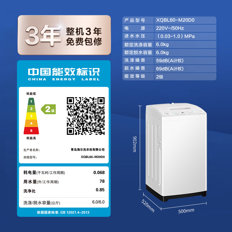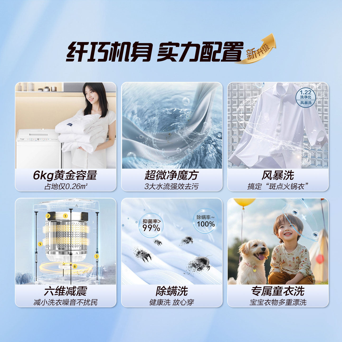 海尔出品统帅6公斤全自动波轮白色小型洗衣机婴儿家用宿舍除螨
