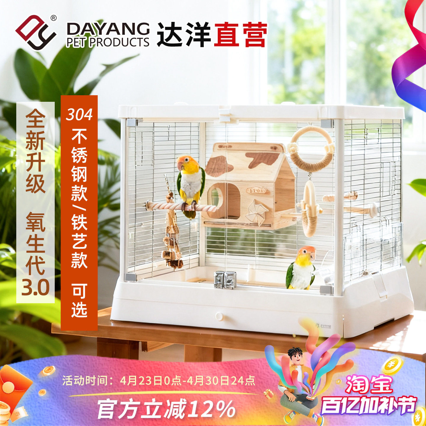 达洋鹦鹉鸟笼子B5001SS全景玻璃304不锈钢家养鸟别墅和尚玄凤虎皮