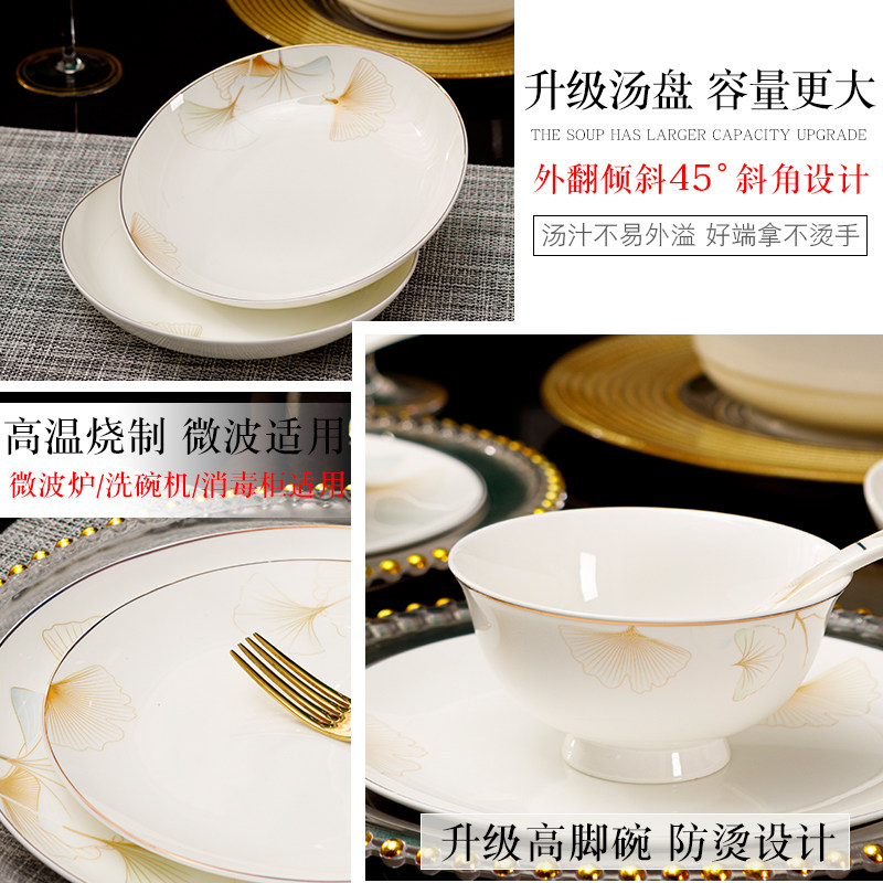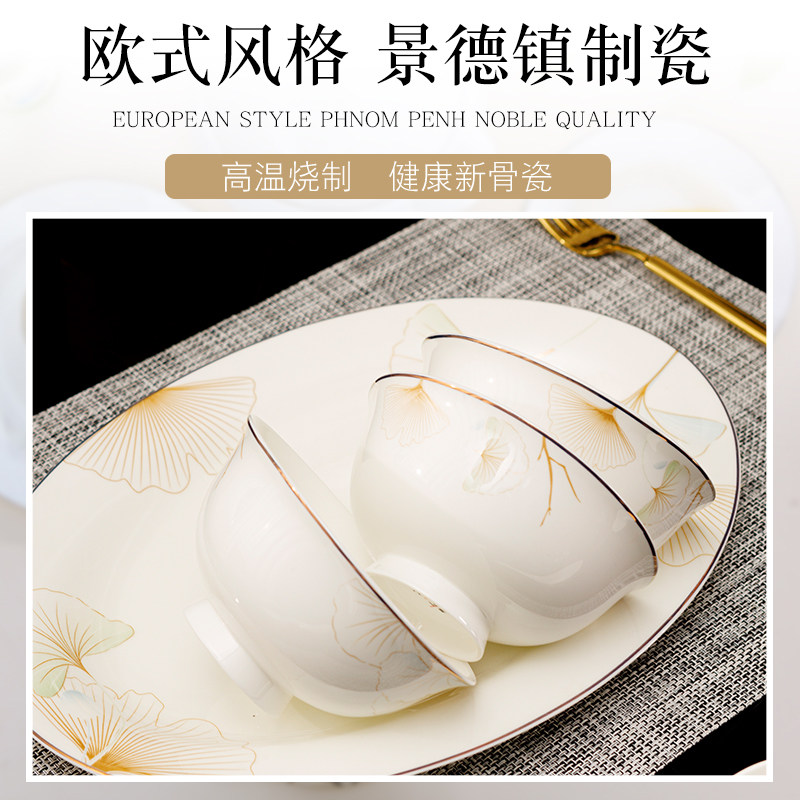碗碟套装 家用景德镇陶瓷碗盘碟筷韩式骨瓷简约吃米饭碗送礼组合