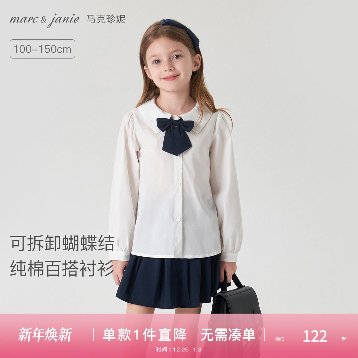 [送领结]马克珍妮女童花边领百搭衬衫儿童衬衣2025秋装新款551922